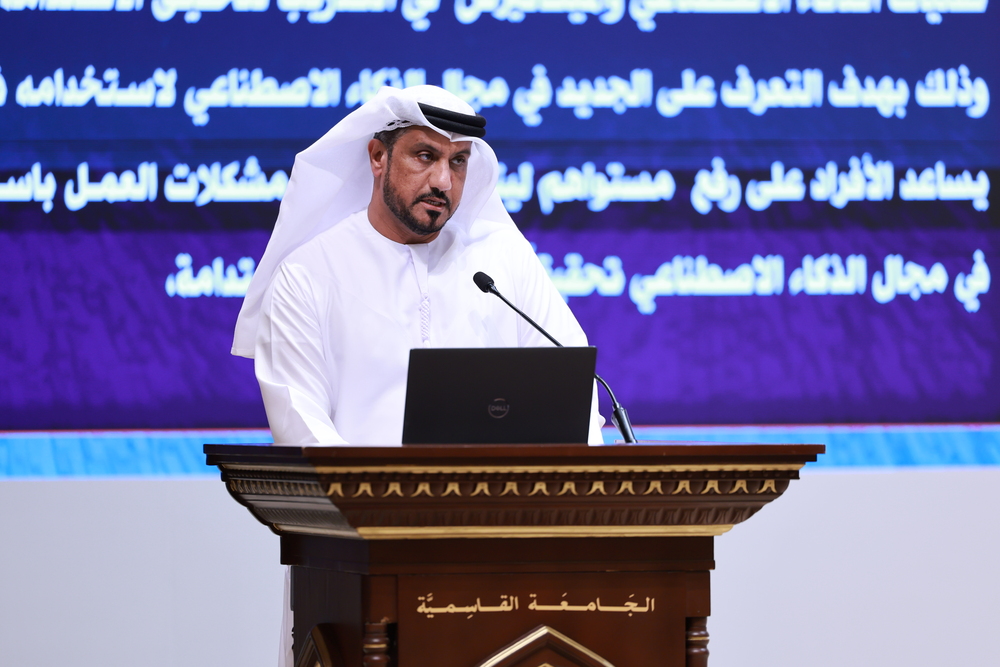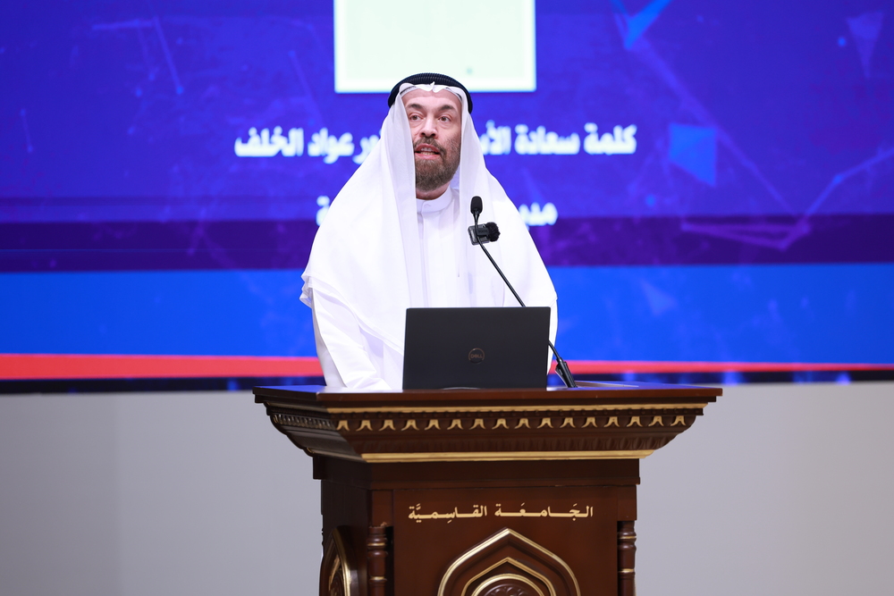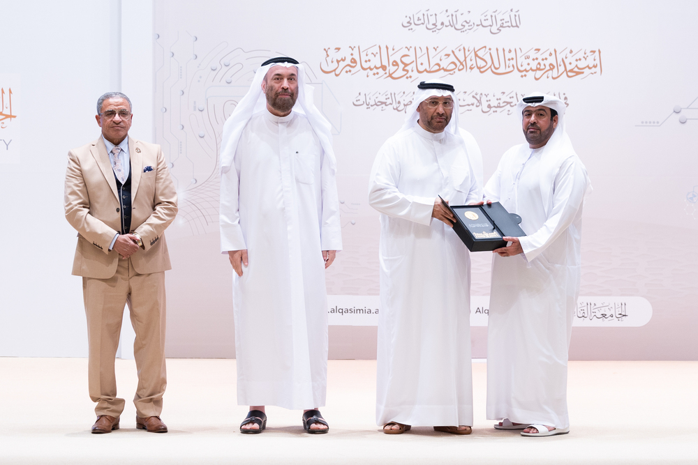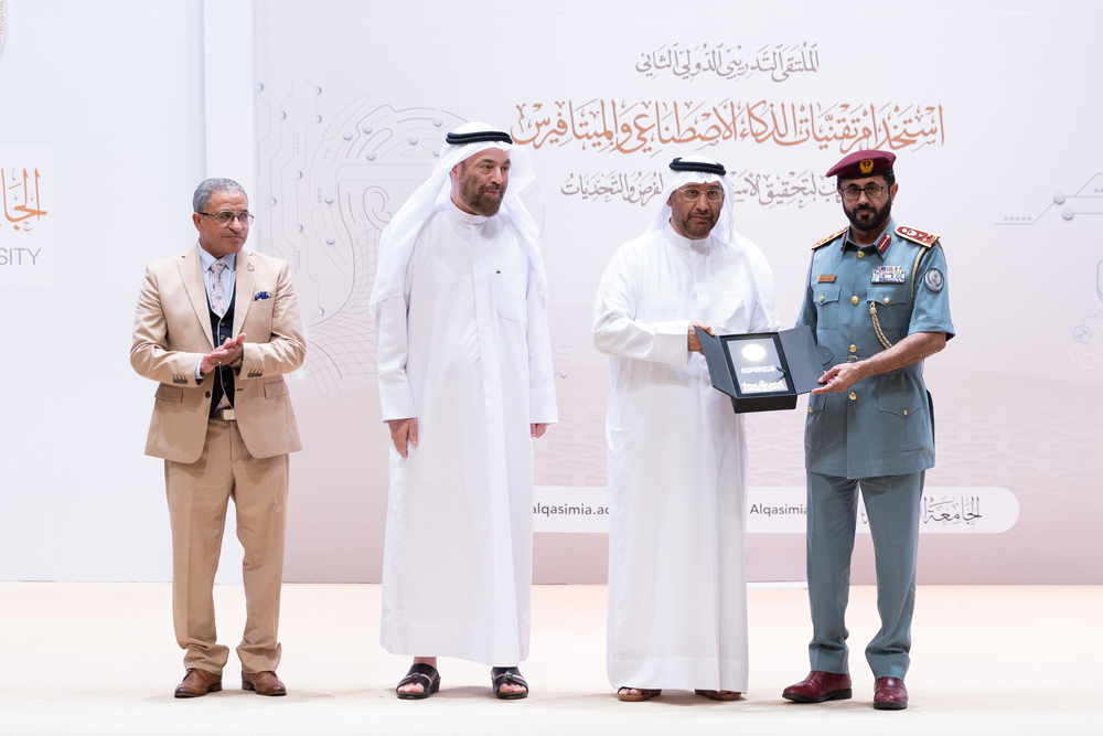 وألقى الأستاذ الدكتور عواد الخلف، مدير الجامعة القاسمية، كلمة أشار فيها إلى أن دولة الإمارات العربية المتحدة من أكثرِ الدولِ استعداداً لمواكبةِ المتغيراتِ التكنولوجيةِ؛ لذا حرصتْ على إطلاقِ الاستراتيجيةِ الوطنيةِ للذكاءِ الاصطناعيِّ بوصفِهِ أحدَ أهمِّ مشروعاتِها المئويةِ لعام 2071م، وأنّ الجامعة القاسمية أدركت التحديات العالمية، والتطوراتِ التكنولوجيةِ الهائلةِ المتسارعةِ في سوق العمل، واهتمت بدعم الشراكات الناشئة في مجال الذكاء الاصطناعي وتقنية الميتافيرس من خلال تنظيم الفعاليات والملتقيات التدريبية التي تُسلط الضوء على أحدث التطورات في هذا المجال، وتوفير برامج تعليمية وتدريبية لتطوير كفاءات بشرية قادرة على المساهمة في بناء هذا العالم الجديد.