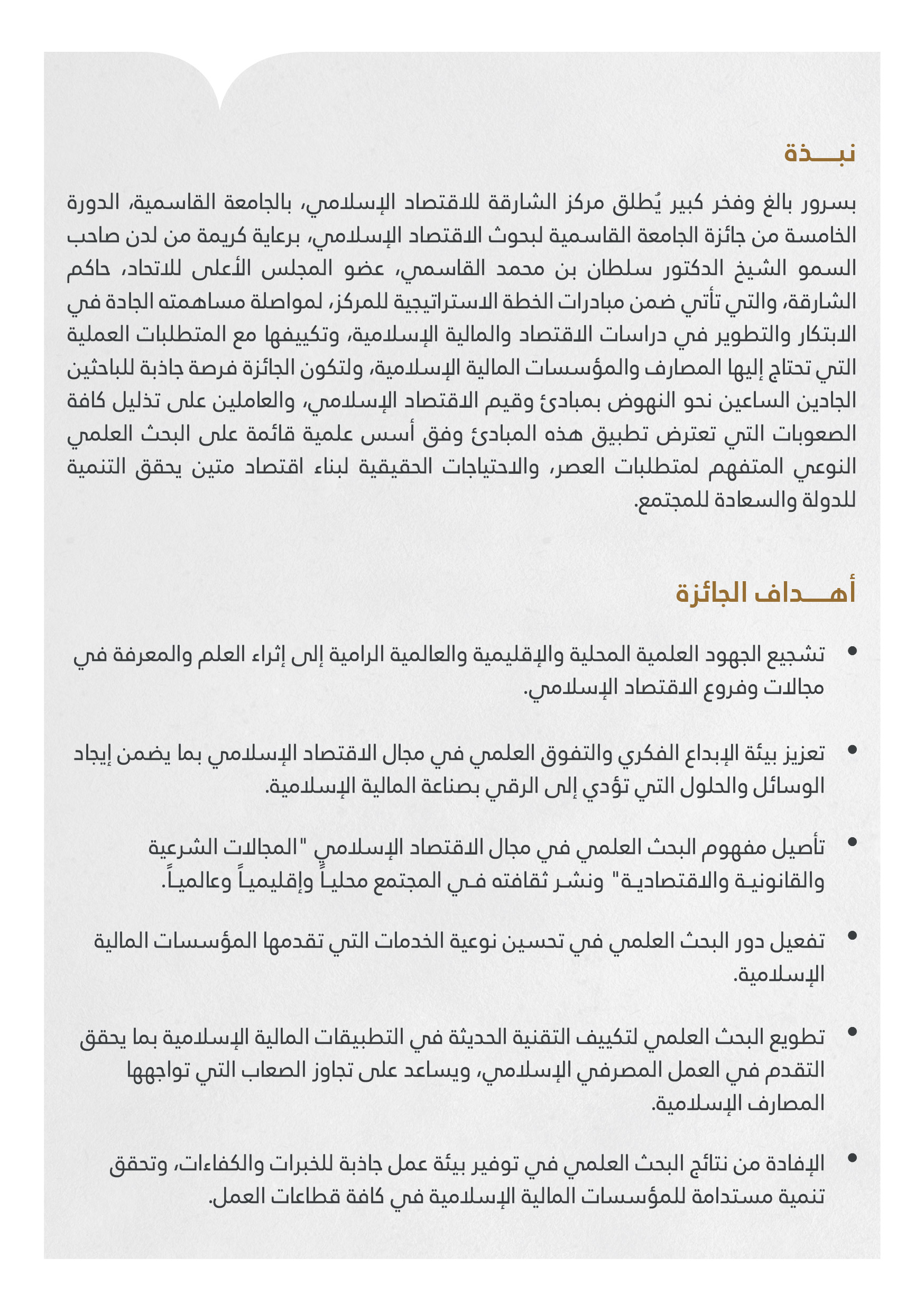 جائزة الجامعة القاسمية لبحوث الاقتصاد الإسلامي - الدورة الخامسة