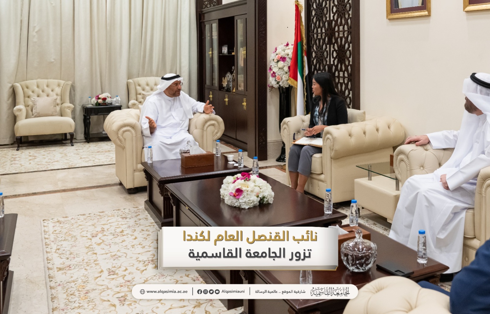 استقبل سعادة الأستاذ جمال الطريفي، رئيس الجامعة القاسمية، سعادة جيني كارنجانا فيجايا، نائب قنصل عام كندا لدى الدولة، حيث جرى بحث عدد من الموضوعات الأكاديمية ذات الاهتمام المشترك، وسبل تعزيز التعاون في المجالات العلمية والتبادل الثقافي. كما اطلعت على تطور الجامعة القاسمية، وما توفره من مرافق تعليمية وسكنية، إلى جانب استراتيجيتها في استقطاب الطلبة من مختلف دول العالم. حضر اللقاء سعادة الأستاذ الدكتور عواد الخلف مدير الجامعة، والدكتور زكريا نوح مدير مكتب العلاقات الدولية واستقطاب الطلبة.
